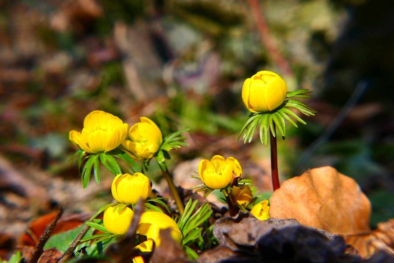 Eranthus hyemalis (winter aconite) Eranthus provides a flash of butter yellow low to the ground in wooded areas early in the spring. This year, they were found hiding under the snowfall, just waiting to be adored. Their frilly bright green leaves create a rich ground cover. Hardy and slow to spread, they reliably return each spring with a few new friends.