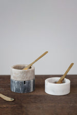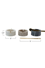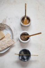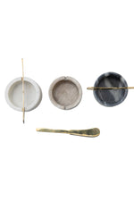3" Round x 1-1/2"H Marble Bowl w/ 5"L Metal Knife, Set of 2, 3 Colors