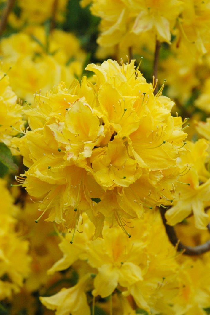 Unit price perLemon Lights Azalea is smothered in stunning clusters of lightly-scented lemon yellow trumpet-shaped flowers with a yellow blotch at the ends of the branches in mid spring. The narrow leaves turn an outstanding purple in the fall. To ensure success this plant must have loose, acidic soil that drains well, and will fail in wet, heavy, poorly draining clay. Amend heavy clay soil with shredded pine bark and add soil sulfur to lower the pH. Best in morning or dappled sun with protection from strong winter sun and wind. Flower bud hardy to -20F.