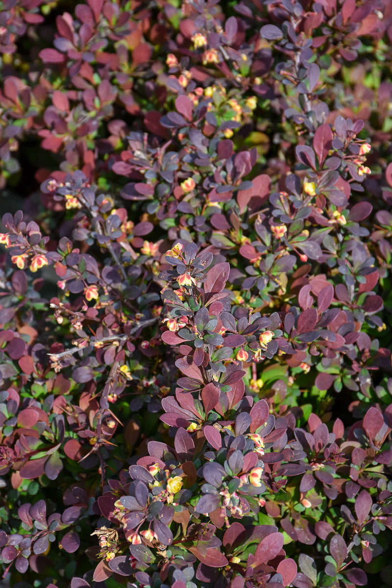 Unit price perWorryFree® Crimson Cutie® Japanese Barberry has attractive deep purple-variegated burgundy foliage on a plant with a round habit of growth. The small oval leaves are highly ornamental and turn an outstanding dark red in the fall. It features tiny clusters of yellow flowers hanging below the branches in mid spring. The fruits are showy scarlet drupes displayed from early to late fall.