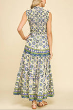 Unit price perElegant ruffles frame the neckline and cuffs while tiered layers create beautiful movement throughout. Delicate smocking adds texture and sophistication to this charming maxi dress. The model pictured wears a size small. Perfect for anyone seeking a feminine, statement-making piece that combines classic details with modern style.