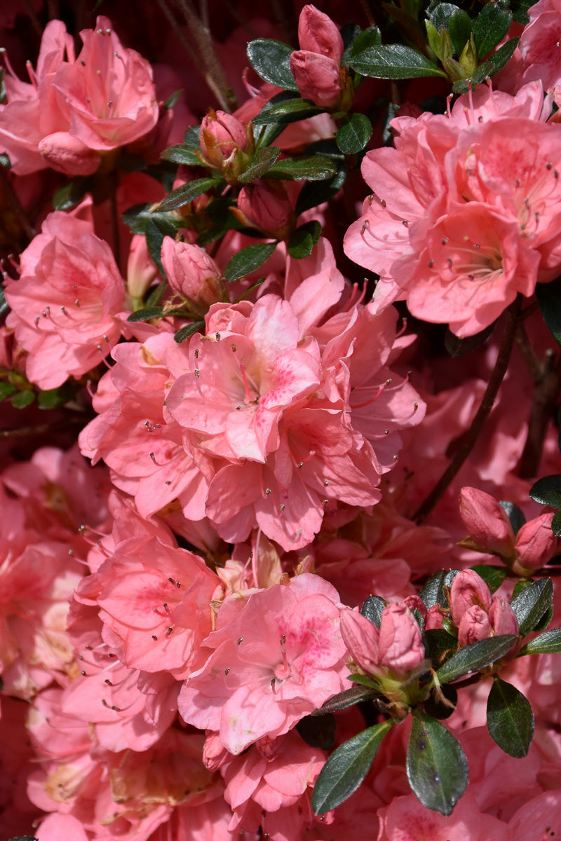 Blaauw's Pink Azalea is bathed in stunning clusters of lightly-scented coral-pink trumpet-shaped flowers with a hot pink blotch at the ends of the branches in late spring before the leaves. It has green deciduous foliage. The narrow leaves do not develop any appreciable fall color.