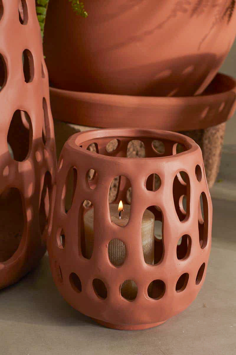 Unit price perCreate a dreamy outdoor space with the lightweight terracotta Alameda Lantern, featuring organic handmade cutouts. Place a citronella or pillar candle inside to ward off bugs & set the mood. Layer multiple sizes together for a cozy, dimensional glow.