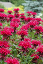 Irresistible to bees, butterflies and hummingbirds the fragrant, long-blooming flowers of Bee Balm enliven the summer garden for weeks! Raspberry Wine has purplish red, globular flowers that emerge from raspberry-like buds at the tips of the upright stems in June, the flowers lasting for weeks. Handsome burgundy leaf bracts surround the flowers for additional color. Edible, minty-scented grayish green leaves can be used to make tea. Removing faded flowers extends the bloom for several more weeks! Super paired with Siberian Iris, Monkshood (Aconitum), Obedient Plant (Physostegia) and Stonecrop (Sedum).