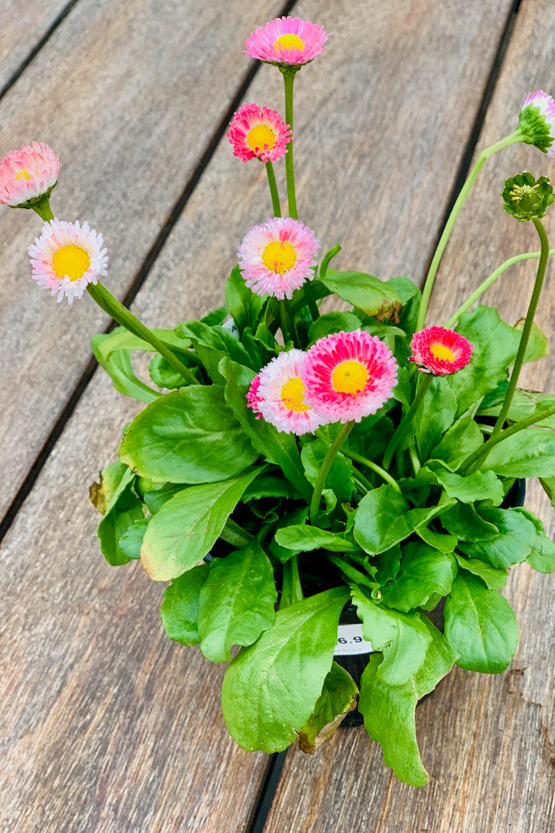 English Daisies have long been popular for spring bedding, particularly in mild winter regions. Plants are biennial, usually lasting through one season, but self-seeding to provide future generations. This strain flowers well even in the first year, with cute little double button flowers of bright rose pink. Removing faded flowers regularly will keep plants blooming well into the summer. Often used to underplant tulips in large public landscapes, these are excellent anywhere in the garden, especially in containers or tubs.