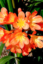 Belgian Hybrid Orange Clivia features showy clusters of lightly-scented orange trumpet-shaped flowers with yellow throats at the ends of the stems from late winter to early spring. Its attractive large sword-like leaves remain dark green in color throughout the year.