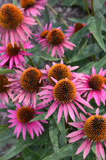 Pica Bella Coneflower has masses of beautiful lightly-scented rose daisy flowers with coppery-bronze eyes at the ends of the stems from mid summer to mid fall, which are most effective when planted in groupings. The flowers are excellent for cutting. Its pointy leaves remain green in color throughout the season.