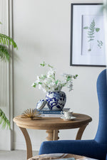 Magnolia Pattern Jar with Lid 6.5"X7.5" Blue & White