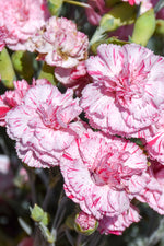 Devon Cottageâ„¢ Pinball Wizard Pinks has masses of beautiful fragrant white frilly flowers with pink stripes at the ends of the stems from late spring to mid summer, which are most effective when planted in groupings. The flowers are excellent for cutting. Its attractive narrow leaves remain silvery blue in color with hints of grayish green throughout the year.