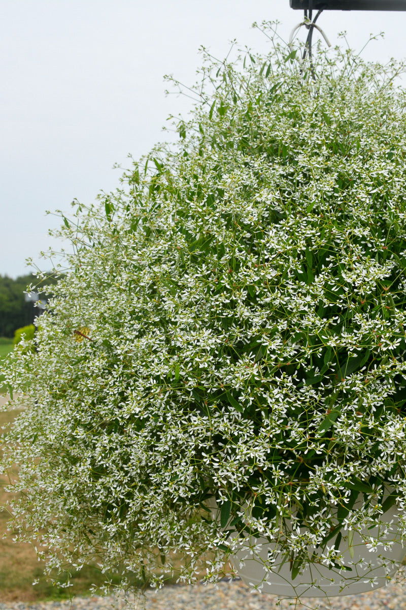Diamond Mountain® Euphorbia features dainty clusters of white flowers at the ends of the stems from mid spring to mid fall. The flowers are excellent for cutting. Its small oval leaves remain green in color throughout the season.