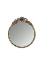 Rustic Metal Flower Topped Round Mirror 17.25" Green, Brown & Gold