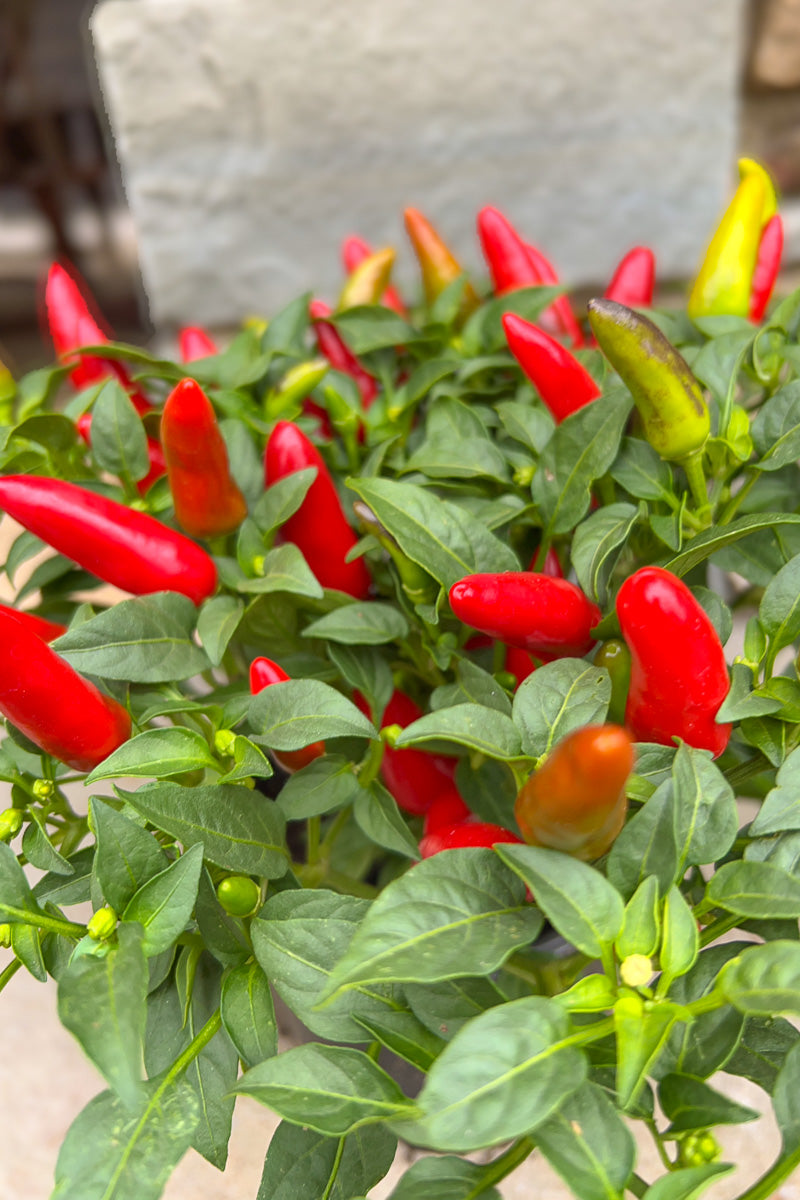Peppers grow in bright shades of red atop this compact fall annual. Bushy, glossy green foliage and colorful fruit that stand in upright clusters at the end of the stems combine to create an outstanding ornamental plant. Adds a great pop of color and unique texture to mixed containers and fall annual beds. Use them as bedding plants in the garden or plant them in pots so you can enjoy them on sunny decks and patios.