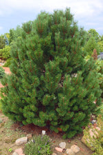 Fastigiate Mugo Pine is primarily valued in the landscape for its distinctively pyramidal habit of growth. It has dark green evergreen foliage. The needles remain dark green throughout the winter.