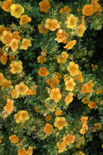 A new variety that's extremely dense and compact with showy yellow flowers streaked with orange from July until frost and fine textured foliage; tough, hardy and adaptable, rarely requires pruning, excellent in mass plantings