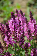 Pink Nebula™ Meadow Sage has masses of beautiful spikes of pink flowers with burgundy calyces rising above the foliage from mid spring to late summer, which are most effective when planted in groupings. The flowers are excellent for cutting. Its fragrant narrow leaves remain green in color throughout the season. The burgundy stems can be quite attractive.