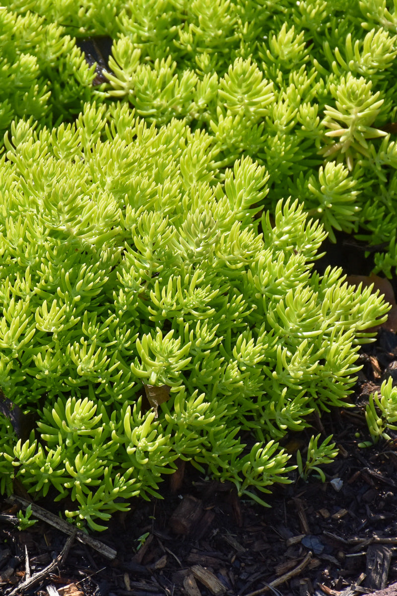 Lemon Coral Stonecrop is smothered in stunning yellow star-shaped flowers at the ends of the stems from early to mid summer. Its attractive succulent needle-like leaves emerge yellow in spring, turning chartreuse in color throughout the season.