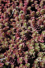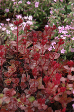 Red Carpet Stonecrop is smothered in stunning red star-shaped flowers at the ends of the stems from early to mid summer. Its attractive tiny succulent round leaves emerge burgundy in spring, turning bluish-green in color with distinctive brick red edges. As an added bonus, the foliage turns a gorgeous dark red in the fall.