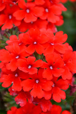 Firehouse™ Red Verbena features showy clusters of scarlet star-shaped flowers with white eyes at the ends of the stems from mid spring to early fall. The flowers are excellent for cutting. Its tiny tomentose narrow leaves remain green in color throughout the season.