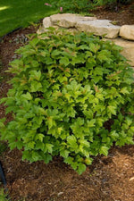 A very attractive garden shrub with lush maple-like foliage that turns bright red in fall; rarely flowers or sets fruit; denser and more compact than the species, hardy and adaptable, makes a great natural low hedge