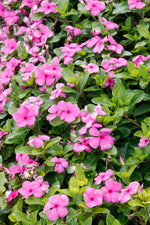 Cora® Cascade Lilac Vinca is a dense herbaceous annual with a trailing habit of growth, eventually spilling over the edges of hanging baskets and containers. Its medium texture blends into the garden, but can always be balanced by a couple of finer or coarser plants for an effective composition.