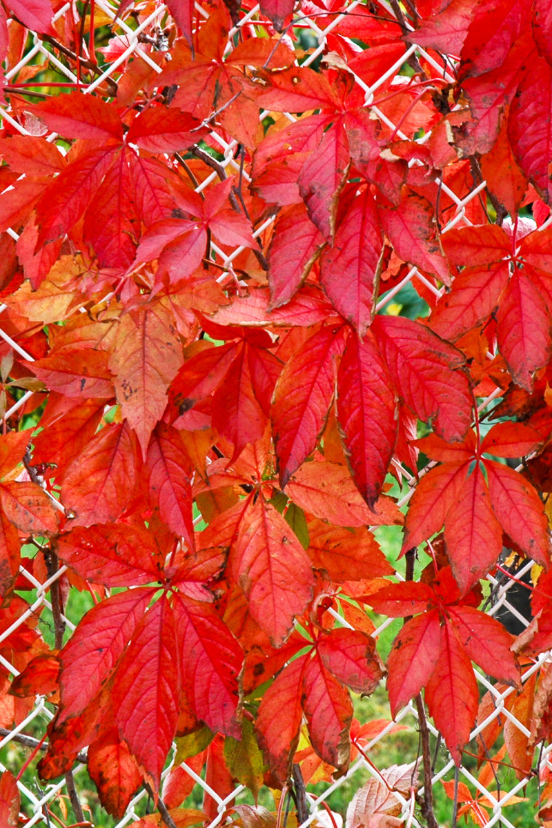 Englemann Ivy has dark green deciduous foliage which emerges brick red in spring on a plant with a spreading habit of growth. The large serrated palmate leaves turn an outstanding red in the fall.