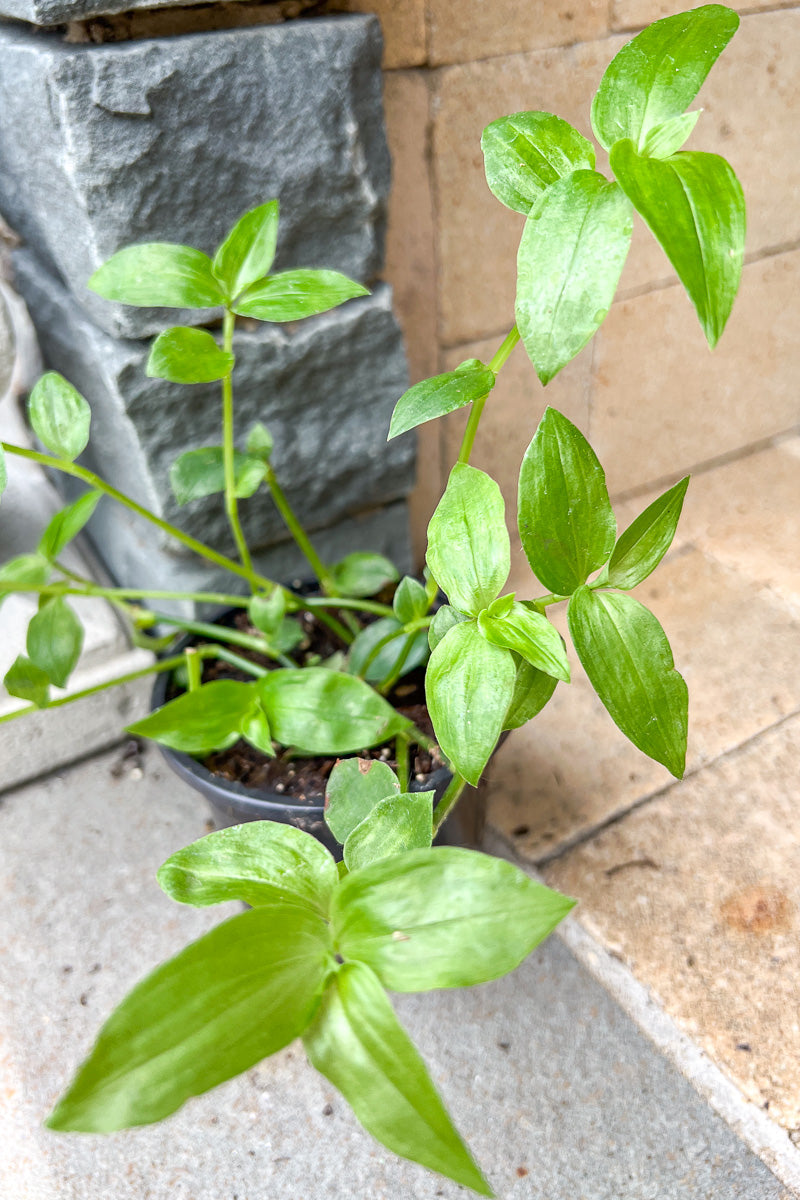 Wandering Jew's attractive pointy leaves emerge purple in spring, turning grayish green in color with curious purple undersides and tinges of silver the rest of the year on a plant with a spreading habit of growth.