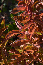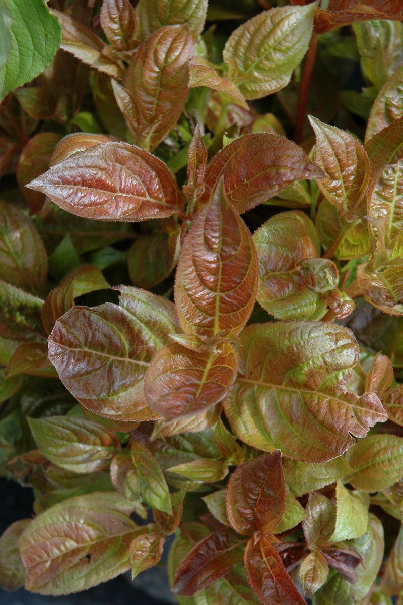 Wings Of Fire Weigela features showy clusters of pink trumpet-shaped flowers along the branches from mid to late spring. It has attractive red-variegated green foliage with hints of orange which emerges red in spring. The glossy pointy leaves are highly ornamental and turn burgundy in fall.