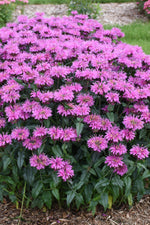 Upscale™ Lavender Taffeta Beebalm has masses of beautiful clusters of fragrant lavender flowers with purple overtones at the ends of the stems from mid summer to early fall, which are most effective when planted in groupings. The flowers are excellent for cutting. Its fragrant pointy leaves remain dark green in color throughout the season.