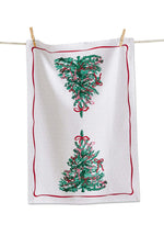 A festive and cheerful dishtowel adorned with pink bows and Christmas treess, perfect for holiday gatherings and everyday use.