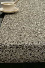 Unit price perAt first glance Metallic Lace appears to be real metal, however upon closer inspection it is clearly a very sophisticated and refined textile. The open abstract netting is 'metalized' to form the metallic looking surface and thus becomes a truly contemporary lace in both placemats and runners.