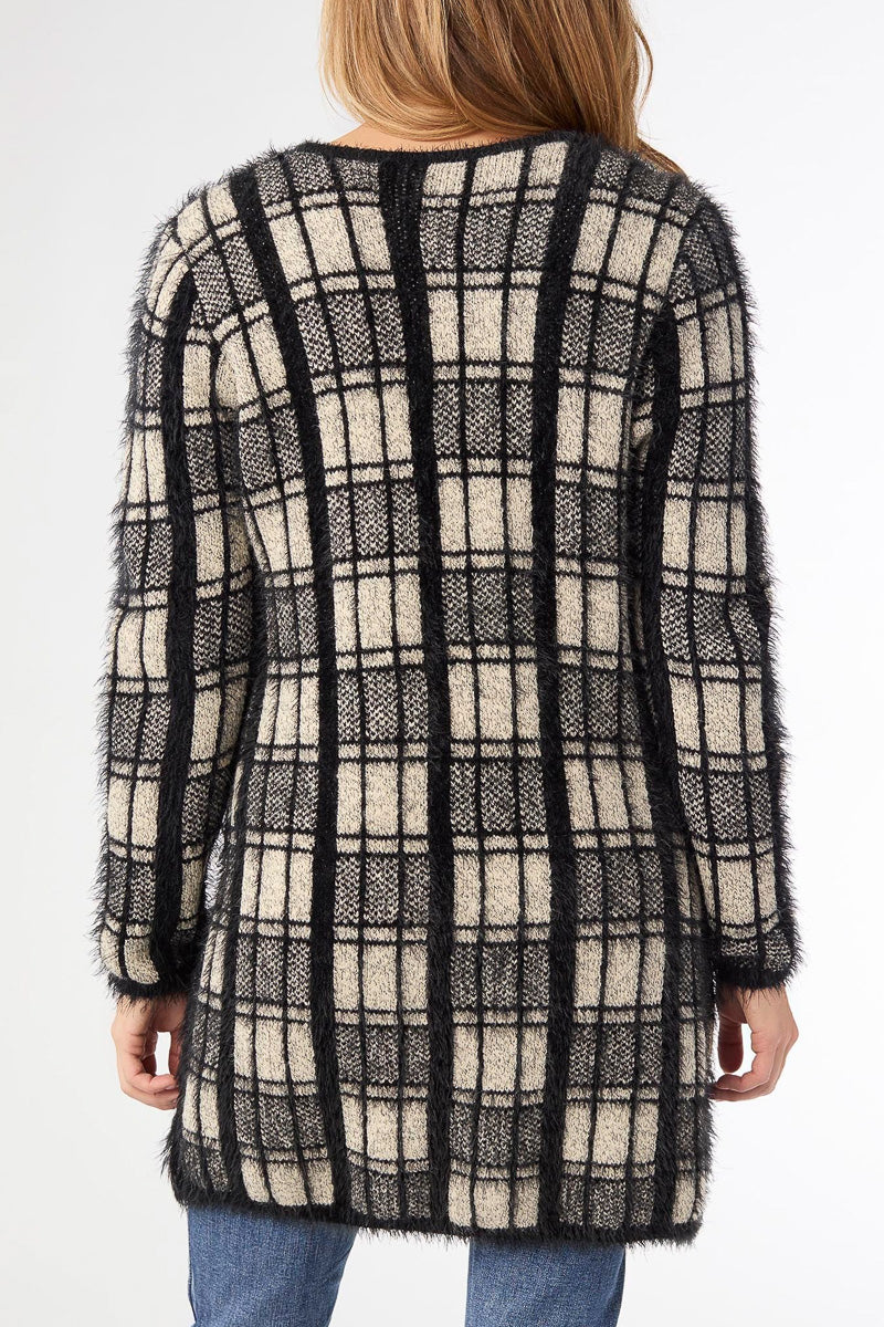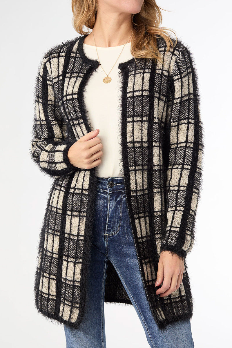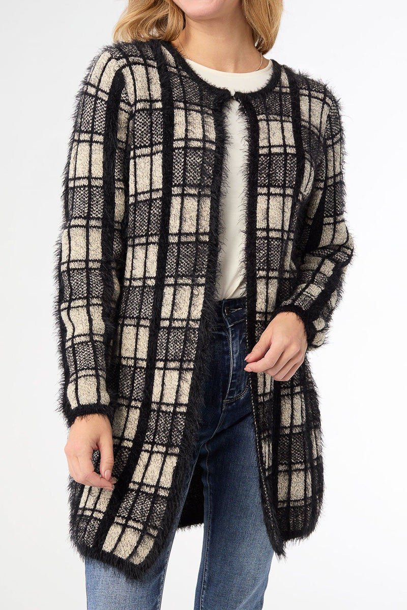 Eliana Mohair Brushed Open Cardigan XS Black & Oatmeal