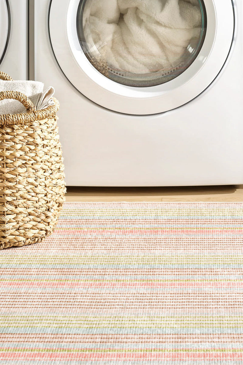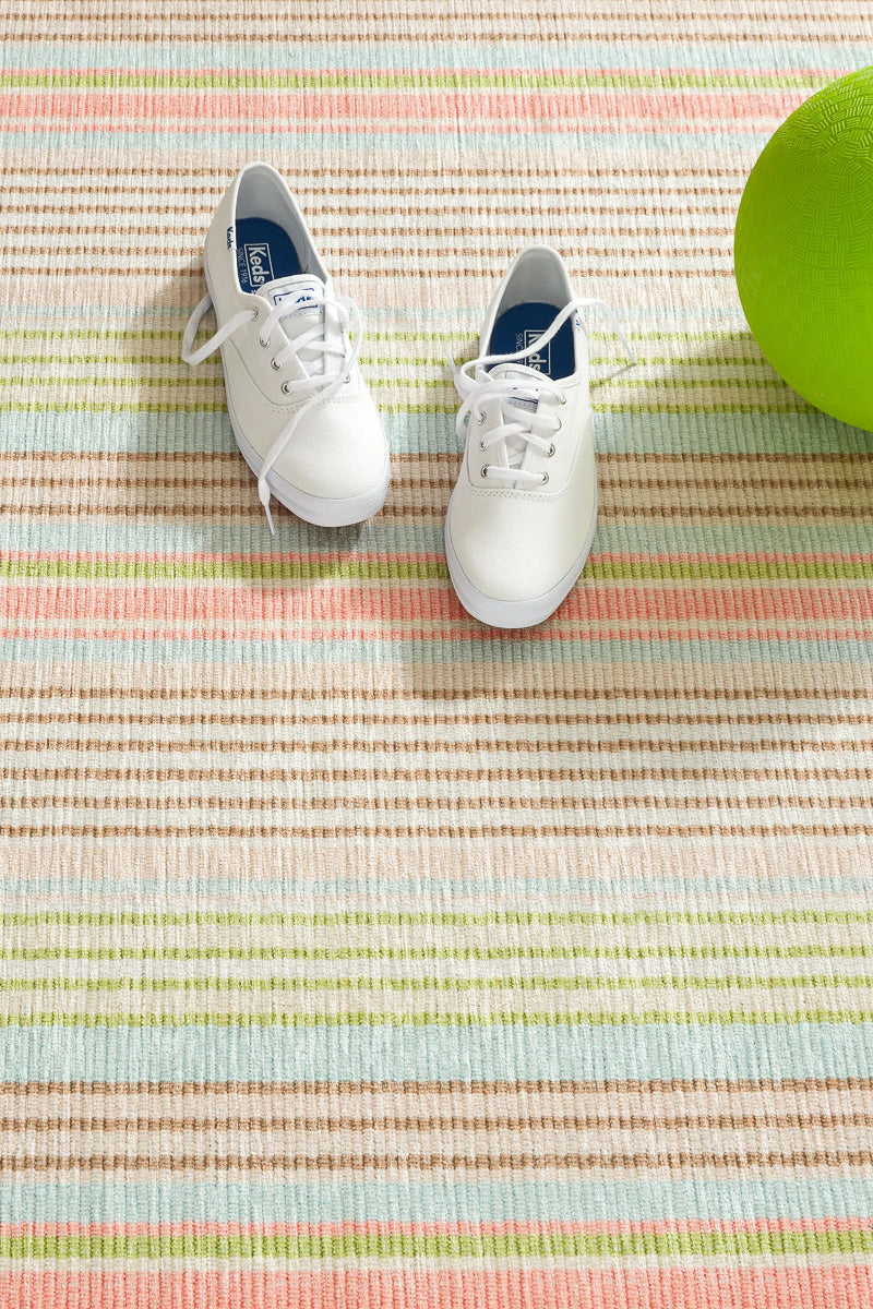 Unit price perOur Candy Stripe Handwoven Indoor/Outdoor Rug delivers a delightful burst of color with its lively, multicolored stripes and playful zipper stripes. Crafted using the Scandinavian Krokbragd weaving technique, this unique design brings visual interest and texture to any space. Soft underfoot, quick-drying, and easy to clean, it’s made to handle everything from sandy beach feet to everyday spills. Perfect for indoors or out, this rug is a standout piece that brightens your space while making upkeep a breeze.