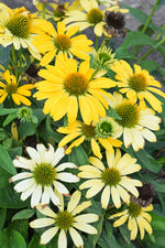 Color Coded™ Yellow My Darling Coneflower has masses of beautiful lightly-scented yellow daisy flowers with coppery-bronze eyes at the ends of the stems from mid to late summer, which are most effective when planted in groupings. 'Yellow My Darling' has rich yellow flowers contrast beautifully with its dark green leaves. Flowers age to an attractive creamy yellow. A large volume of petals to make the flowers last for a long time and they are selected for their excellent basal branching, flower performance, large flower size, and horizontally held petals.