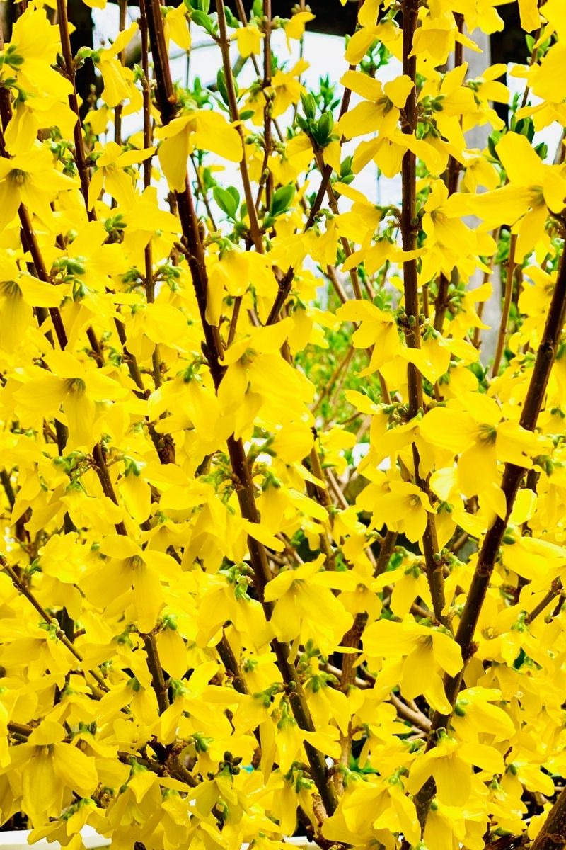 A noticeable improvement over older forsythia varieties with huge yellow flowers blooming reliably from the tips of the branches all the way to the ground! Show Off is indeed that, flaunting large, densely set, brilliant yellow flowers all along the bare branches in April. You can even use them as cut flowers! Dark green, trouble-free leaves may turn burgundy to yellow in fall. The long stems are great for forcing. Dense, compact and upright in form, making this a great choice for mixed borders and no work, natural hedging. It's easy to care for and deer stay away.