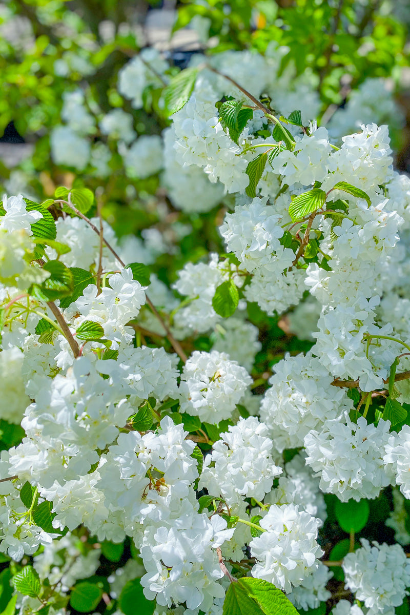 Unit price perEastern Snowball Viburnum features showy balls of white flowers at the ends of the branches from late spring to early summer. It has dark green deciduous foliage. The large serrated lobed leaves turn outstanding shades of purple and in the fall. The smooth gray bark adds an interesting dimension to the landscape.