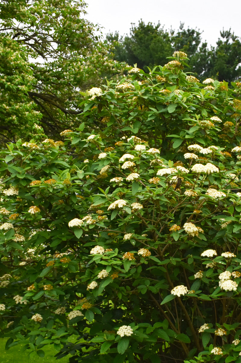 Unit price perAn attractive garden shrub featuring showy flat-topped clusters of creamy white flowers in late spring followed by bluish-black berries, attractive to birds, excellent fall color; an upright spreading shrub, rugged and adaptable, ideal as a natural hedge.