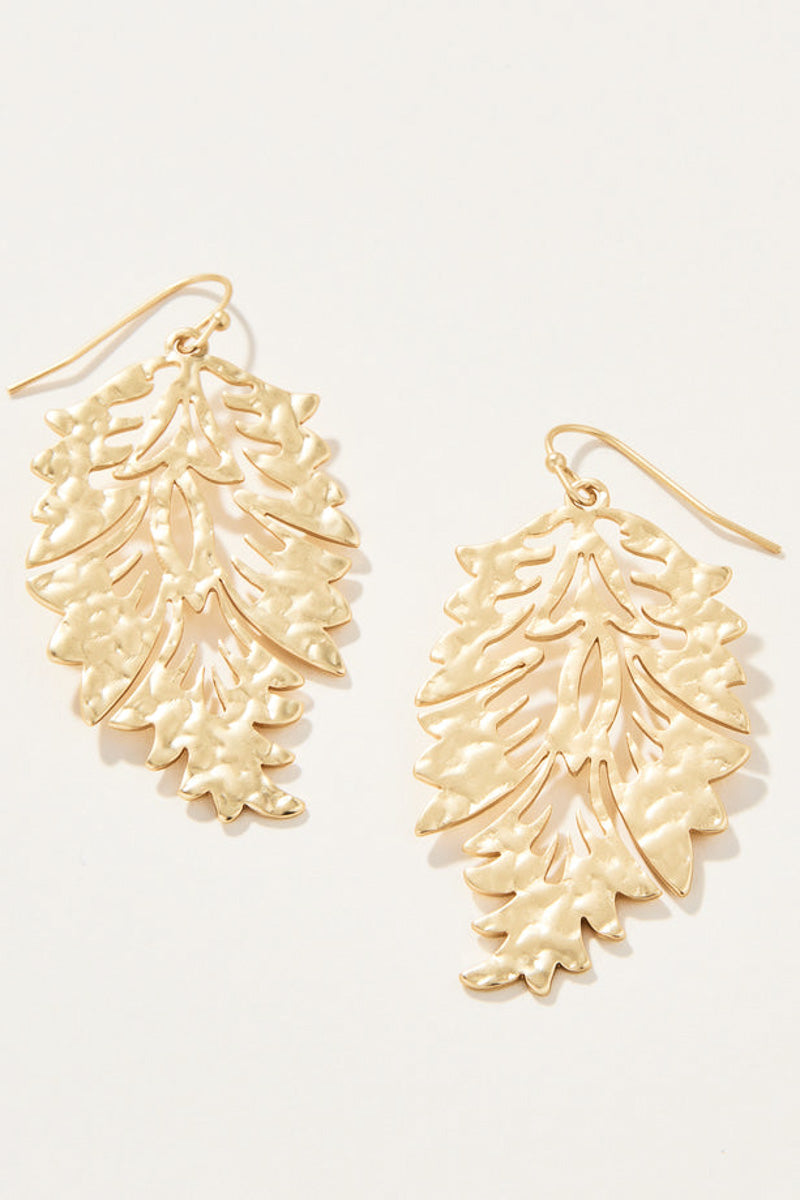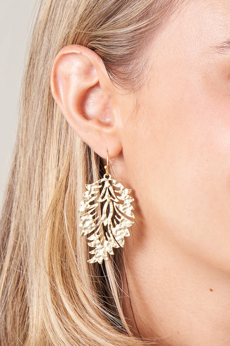Textured fall leaves plated in 18kt matte gold or matte sterling silver create these nature inspired Bellinger Earrings.