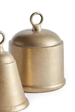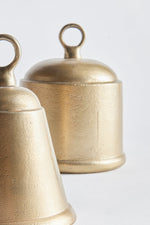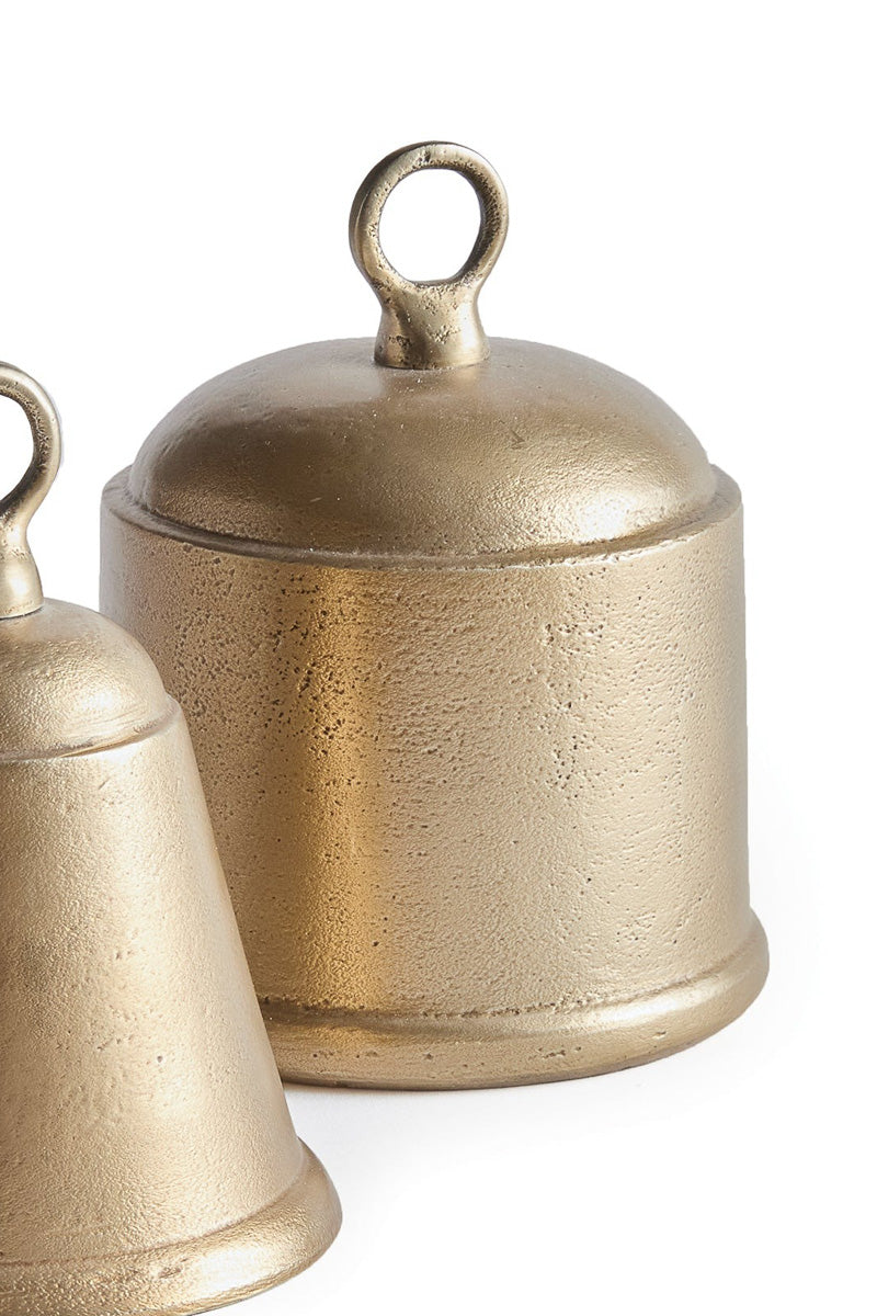 Old fashioned objets in cast aluminum, these historic shapes are functional bells. Place this pair atop a stack of art books on the ottoman or arrange in a bookshelf for a classic look.