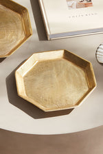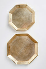 A geometric shape and sleek look make these cast aluminum trays unique. Line with a collection of candles for a golden, contemporary touch. They are dry food safe, so serve your favorite muffins or rolls in style at your next gathering.