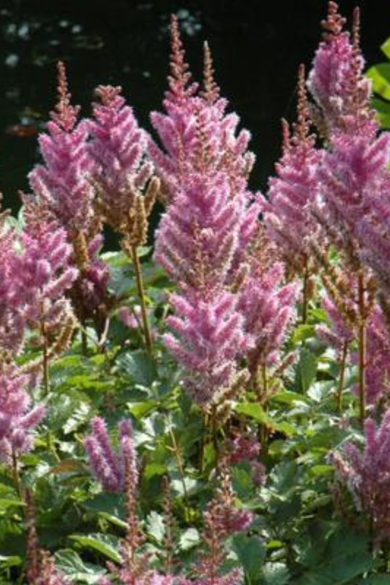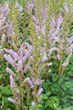 Dwarf Chinese Astilbe has masses of beautiful plumes of lilac purple flowers with pink overtones rising above the foliage from mid to late summer, which are most effective when planted in groupings. The flowers are excellent for cutting. Its serrated ferny compound leaves remain emerald green in color throughout the season.
