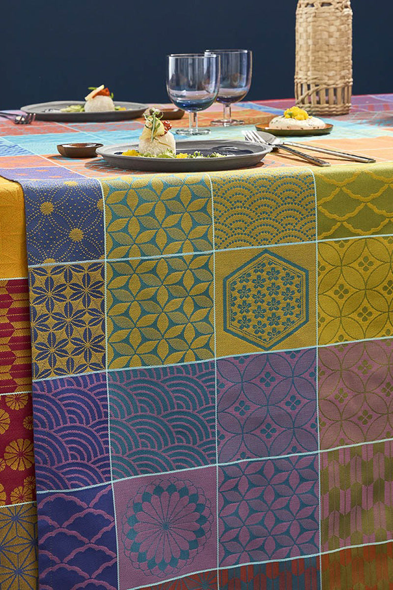 Unit price perThe Mille Hana Floralies Tablerunner is woven in France from 100% extra-long staple cotton, featuring a richly textured jacquard weave with a soft, elegant hand. Its multicolored floral tile pattern in shades of orange, red, blue, and purple is carefully layered to create depth and fluidity. A refined accent for any table, it brings a vibrant touch of French artistry to everyday and special occasions alike.