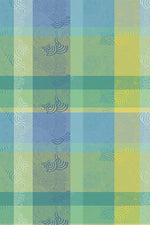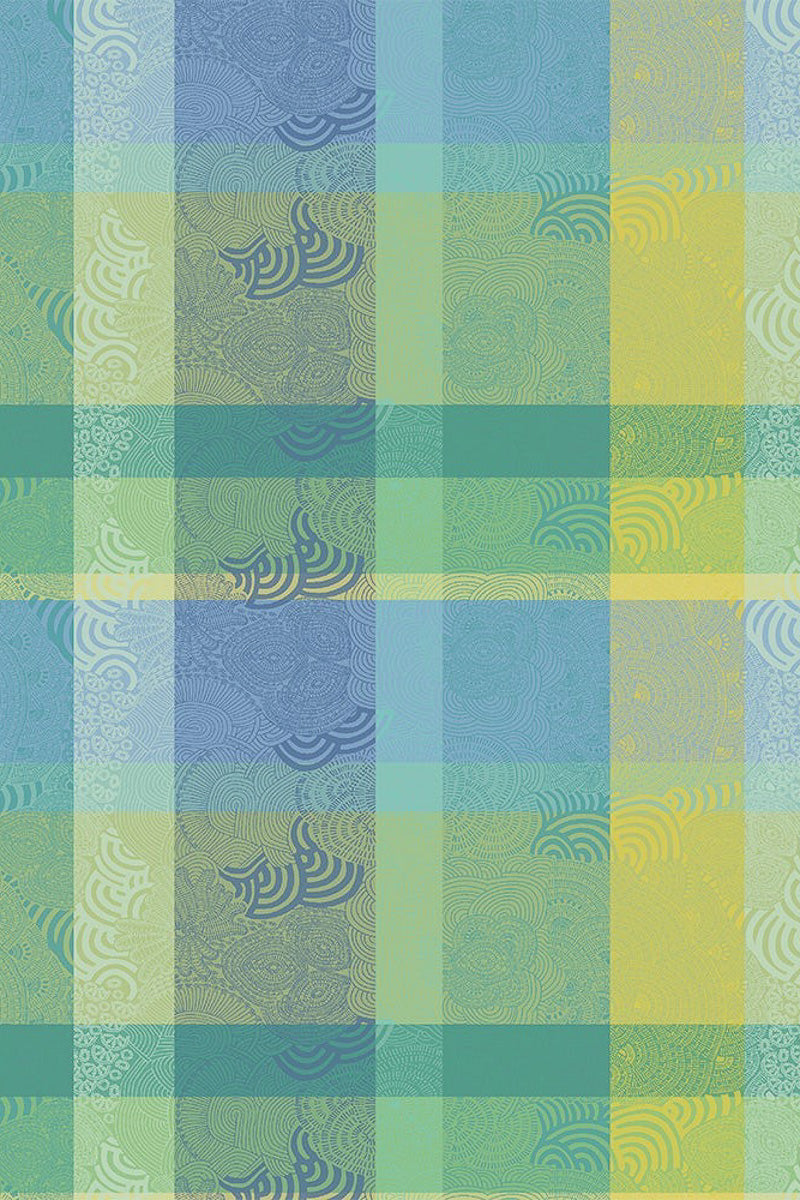 Floral grooves in blue and green come alive, inspired by travels in far-off lands.