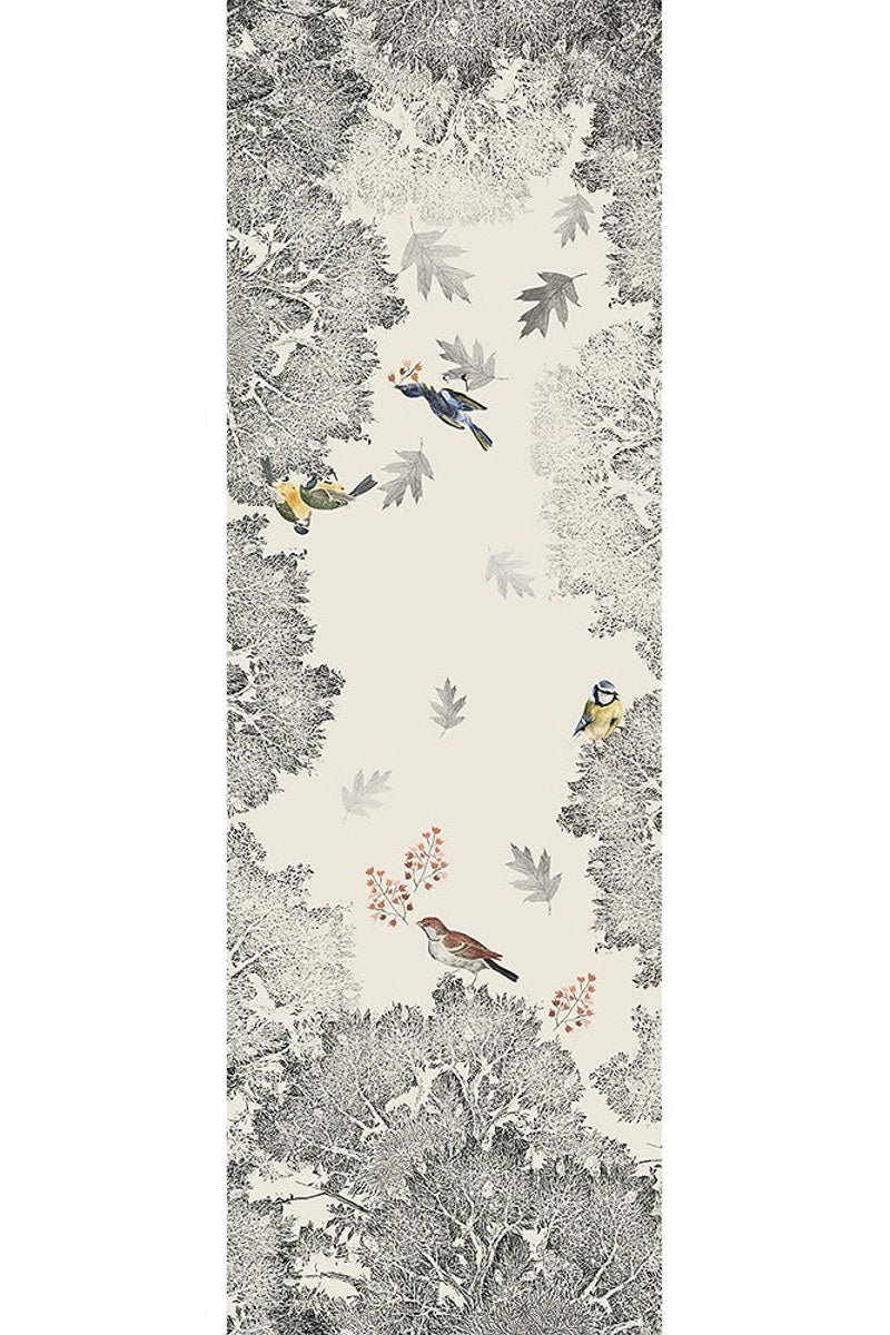 Unit price perUse the skillful craftsmanship of black wood charcoal featuring monochrome florals and colorful birds to create a one-of-a-kind tablerunner in Halflinen (50% cotton/50% linen).