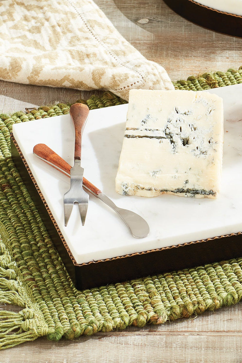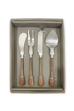 Made of stainless steel, with light acacia wood carved handles, our Haisley Cheese Knives are made by skilled artisans. A casual, and cool addition to your cheese tray.
