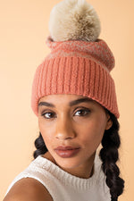 Are soft pastels your thing? This contemporary knit is subtle with its fluffy pom pom. The perfect accessory as the nights draw in and days get cooler.