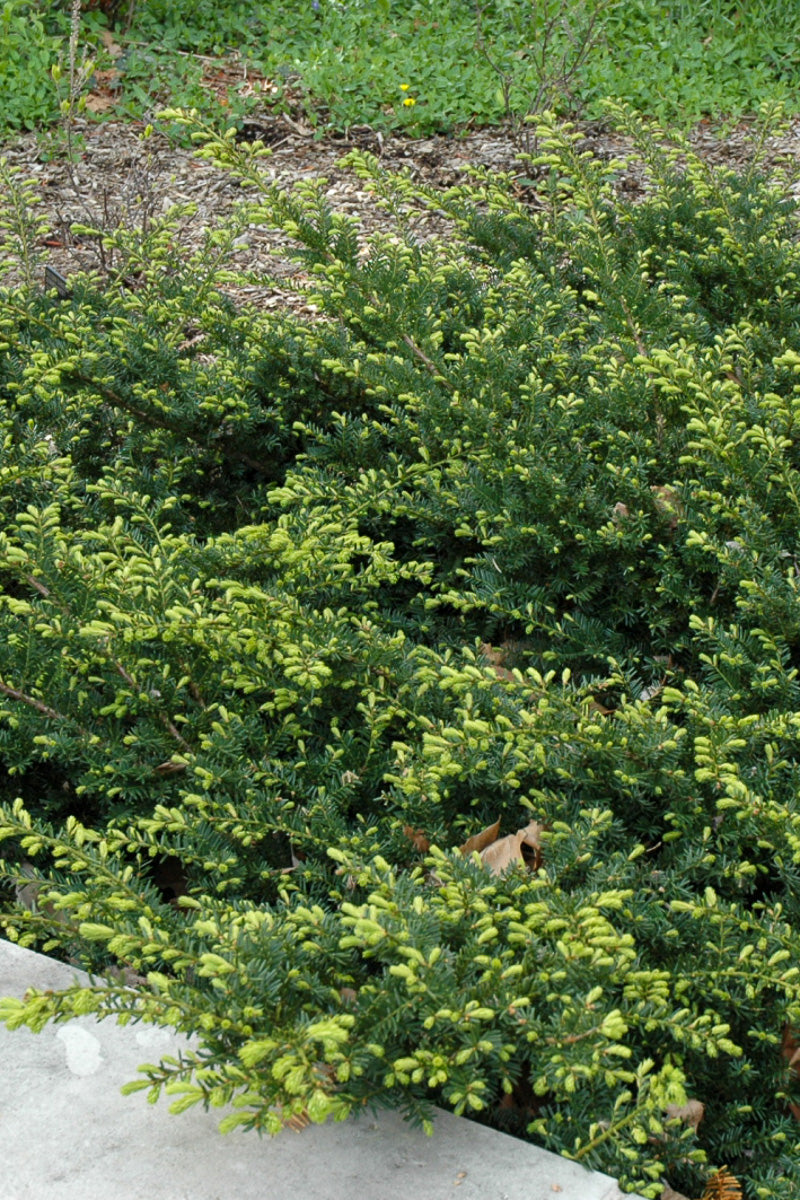 Everlow Yew is a dwarf conifer which is primarily valued in the garden for its broadly spreading habit of growth. It has dark green evergreen foliage which emerges light green in spring. The ferny sprays of foliage remain dark green throughout the winter. The fruits are showy red drupes displayed from early to late fall.