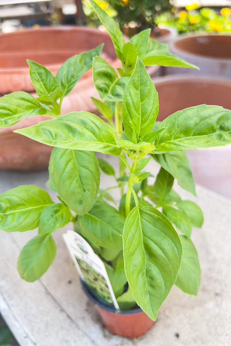 Aromatic leaves with a spicy clove fragrance and flavor are outstanding for tomato sauce, pesto, salad, and meat dishes. White flowers are attractive in the herb garden, but are usually pinched off as buds form to promote high-quality leaves for cooking.