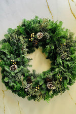Unit price perIndulge in the beauty of the holiday season with our fresh cut wreaths. Made from fresh greenery, this evergreen wreath exudes a rustic charm that will add a touch of nature to your home.