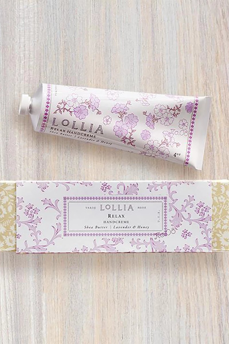 Unit price perTreat your skin to Lollia’s signature Relax Handcreme in a petite, purse-perfect size. Rich, moisturizing Shea Butter, Avocado & Macadamia Nut Oils soothe & comfort skin. Lightly fragranced with Lavender & Honey Blossom with White Orchids and a touch of warm Indian Amber and Tahitian Vanilla. Absorbs quickly for supremely soft skin.