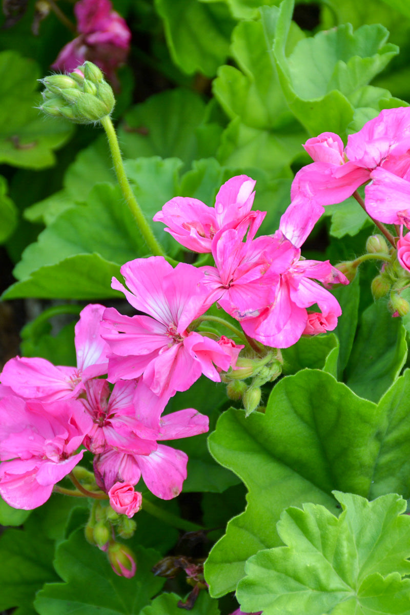 Calliope® Pink Geranium features bold balls of lightly-scented pink flowers at the ends of the stems from late spring to early fall. The flowers are excellent for cutting. Its tomentose round palmate leaves remain light green in color with distinctive dark green veins throughout the year.